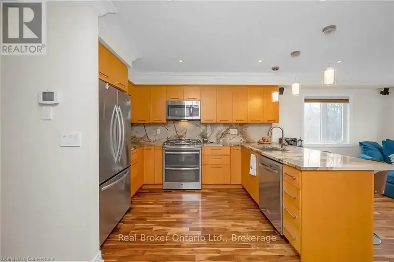 MLS® Number: W12299789 For Lease, Stunning End-Unit Townhouse with Breathtaking Bay Views Nestled in a peaceful residential enclave, this exceptional 2-bedroom, 4-bathroom end-unit townhouse offers unparalleled views of Burlington Bay and is just steps from the Royal Botanical Gardens. Surrounded by mature trees, windows on three sides, fills the space with an abundance of natural light. The open-concept main floor features hardwood flooring throughout. The kitchen has stainless steel appliances, granite countertops, and a separate dining area. The inviting living room opens onto a private patio, complete with a gas barbecue and a beautifully landscaped, fully fenced backyard that backs onto the Waterfront Trail. Upstairs, you'll find two large bedrooms, a 4-piece bathroom, and a spacious primary suite with a walk-in closet and an updated 4-piece ensuite. The fully finished basement offers versatility, featuring a large recreation room that could easily serve as a third bedroom. A gas fireplace, an additional 4-piece bathroom, laundry, and a second walkout to a private rear patio overlooking walking trails complete this level. Located in a quiet, well maintained complex with low condo fees, this home offers easy access to the GO Station, major highways (403/407/QEW/HWY 6), and public transit. With 2,400 acres of conservation land and scenic waterfront trails at your doorstep, this is one of the best townhomes in the area offering unmatched views, natural beauty, and modern conveniences. Instant hot water tank owned. Dont miss this rare opportunity! (id:61160) SCOTT BENSON888-311-1172Real Broker Ontario Ltd.Firm888-311-1172MICHELLE CHAMPAGNE888-311-1172Real Broker Ontario Ltd.Firm888-311-1172 This listing content provided by REALTOR.ca has been licensed by REALTOR® members of The Canadian Real Estate Association. The trademarks MLS®, Multiple Listing Service® and the associated logos are owned by The Canadian Real Estate Association (CREA) and identify the quality of services provided by real estate professionals who are members of CREA.