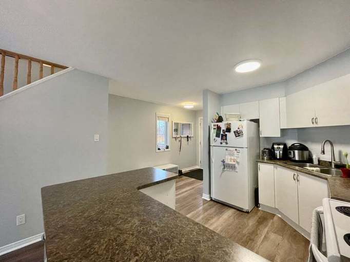 Ottawa, Orleans. Lovely, Open concept End Unit, 2 Bed, 1.5 bath Townhouse on corner lot in Fallingbrook for rent! Available Aug 2nd. This well-maintained home features a renovated full bathroom with double sinks, bath/shower combo. Eat in kitchen with an island and ample cupboards with appliances (Fridge, Stove and Dishwasher). Laminate flooring on the main. Patio door off kitchen invites you to a private, fenced backyard with a large deck, gas BBQ hook up and shed! Second level boasts 2 generously sized bedrooms, primary w/double door entry, small walk-in closet and full bathroom. The second and lower levels are carpeted. Lower level is fully finished with a large window, spacious powder room, Laundry and storage area. Central Air! Hot water tank rental extra @ $45/month. Single Car Garage and Driveway Parking! Quiet neighbourhood close to transit, schools, parks, shopping and minutes to Petrie Island!