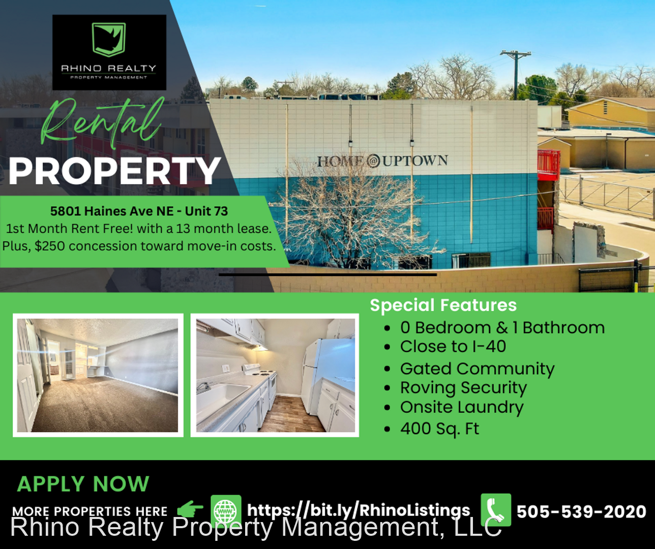 1st Month Rent Free! with a 13 month lease.