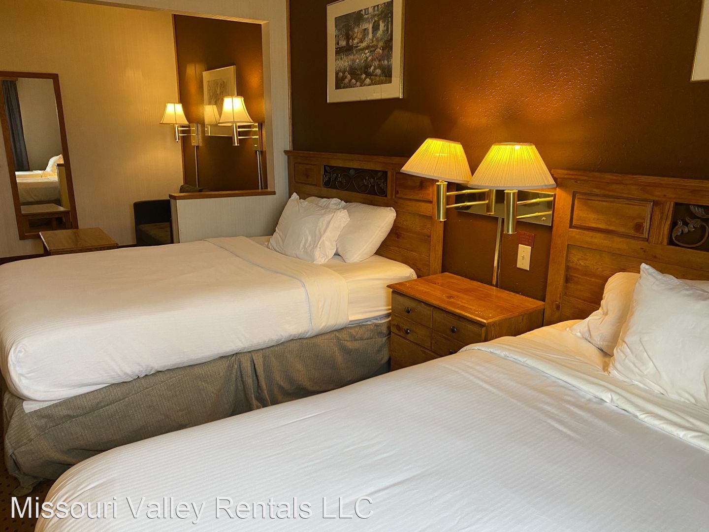 Fully furnished room with 2 beds, Utilities Paid plus Bonus work out room - Fully furnished rooms with bed, couch, tv, safe, microwave, and fridge. All utilities paid. Located next to I-94, Divide Avenue, and Expressway for easy access to Bismarck. Onsite laundry on each floor.