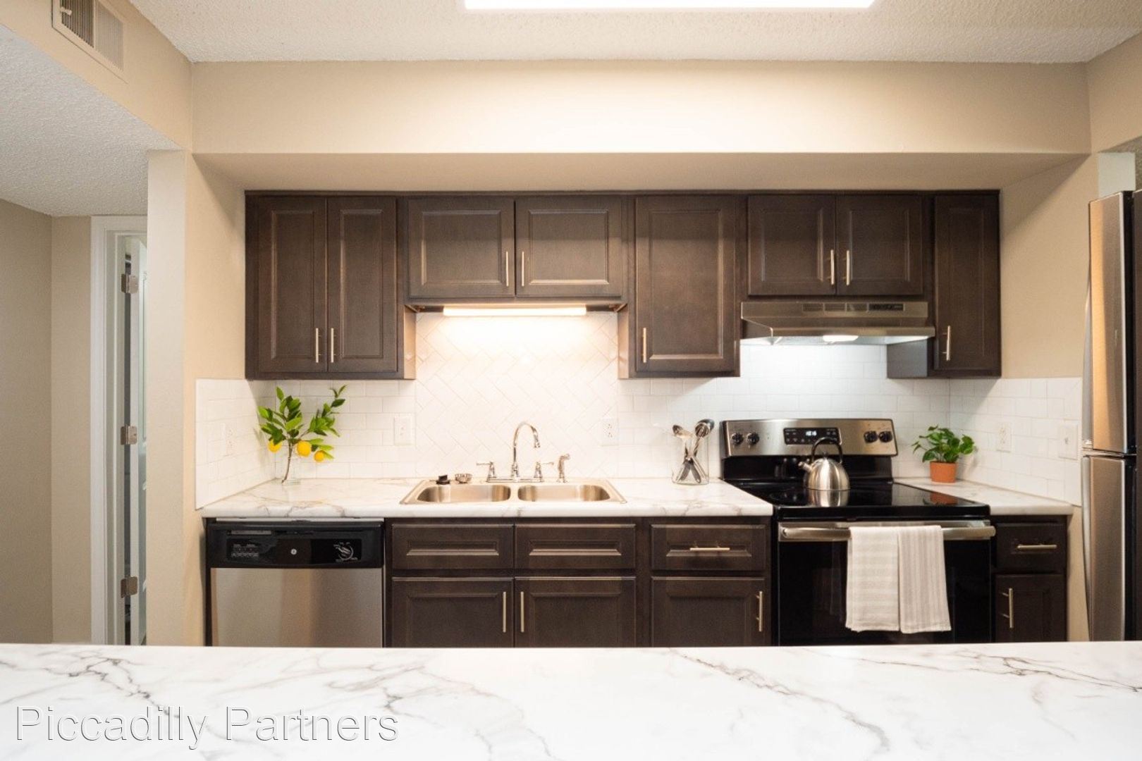 The Evandale Remodeled - The Evandale is our very popular "Roommate Style" 2 Bedroom unit. There is a full bath off each of the large bedrooms, plenty of closet space, washer/dryer connections, and a wood-burning fireplace. This unit is fully remodeled and features updated cabinets and countertops throughout, upgraded appliances, and a modern subway tile backsplash.
